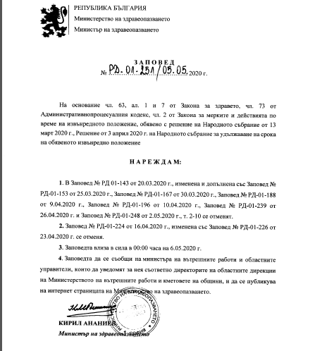 От 00:00 часа на 6 май преустановяват дейността си контролно-пропускателните пунктове, организирани от Министерството на вътрешните работи, на входно-изходните пътища на областните центрове. Това нарежда министърът на здравеопазването със своя заповед, издадена днес.