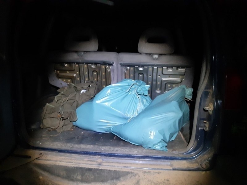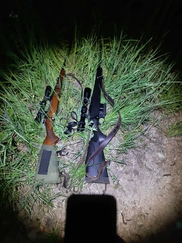 На земята в тревист участък са намерени 2 карабини с оптика и лек автомобил "Нисан Терано II" с монтанска регистрация, като в багажното отделение в 2 чувала и чанта са открити два сръндака, по около 30 кг с отрязани глави и огнестрелни рани.