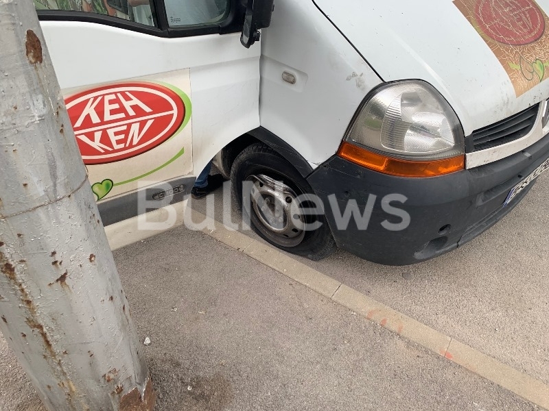 Бусът е спрян в пътната лента в посока бл. 26, за това преминаващите в района трябва да са внимателни. На мястото е пристигнал друг служебен автомобил, за да претовари стоката от микробуса.