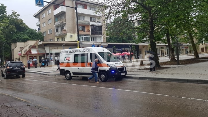 Спешната кола бе извикана зарази паднал мъж на пешеходната зона в центъра на града, по-известна като „Пробива“.