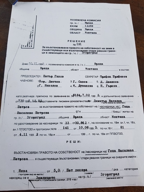Дядо Боян търси помощ: Не му връщат земята в Згориград заради фактическа грешка, институциите нехаят /документи/