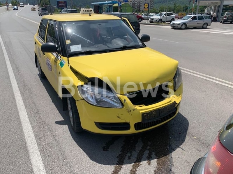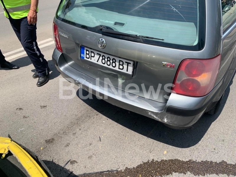 Ударът е между два леки автомобила „Шкода Фабия“ и „Фолксваген Пасат“, като чешкото возило е такси към фирма „Джет“.