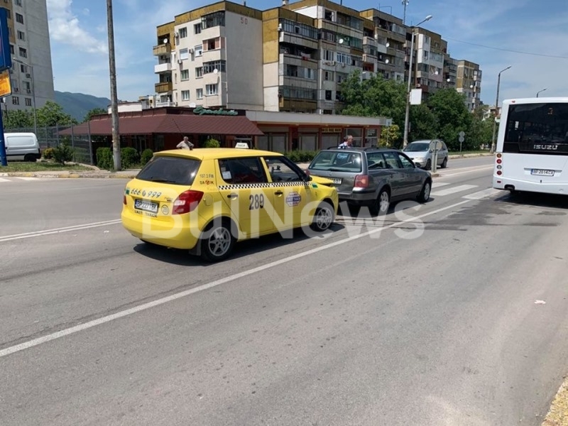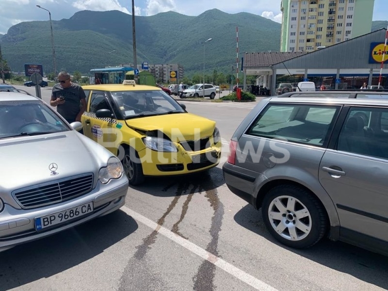 От последните минути! Такси се заби във „Фолксваген“ във Враца, движението е затруднено /снимки/