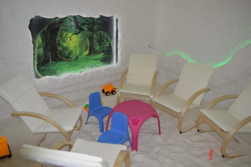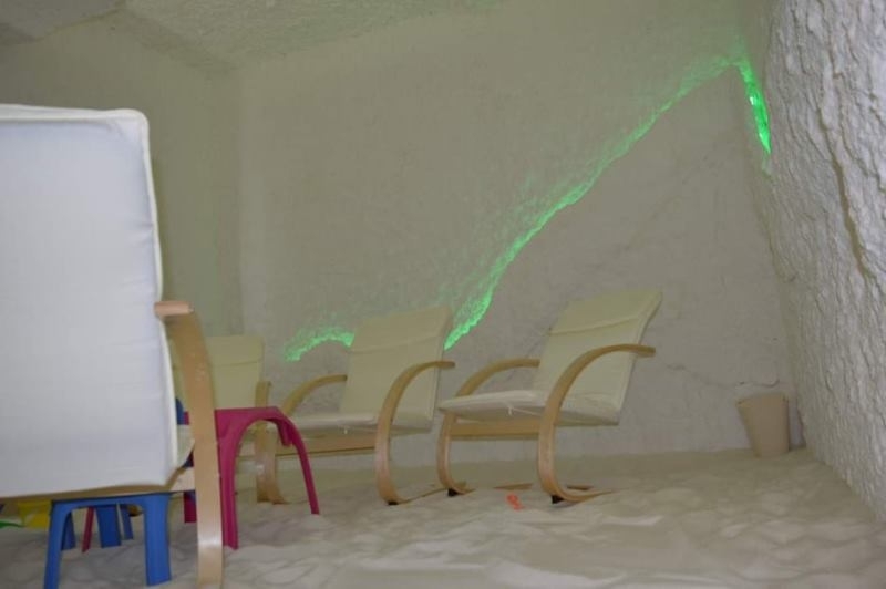 В нея ще се прилага т.нар. халотерапия. От няколко години методът се практикува в спа центове у нас. Интересно е, че четирите стени на помещението са изцяло от сол, а в него специален апарат – халогенератор, впръсква специална медицинска сол и по този начин създава микроклимат, наподобяващ този в някогашните естествени пещери и на морския бряг. Така въздухът става наситен с полезни микроелементи, 80 процента от които се съдържат в кръвната плазма на човека.