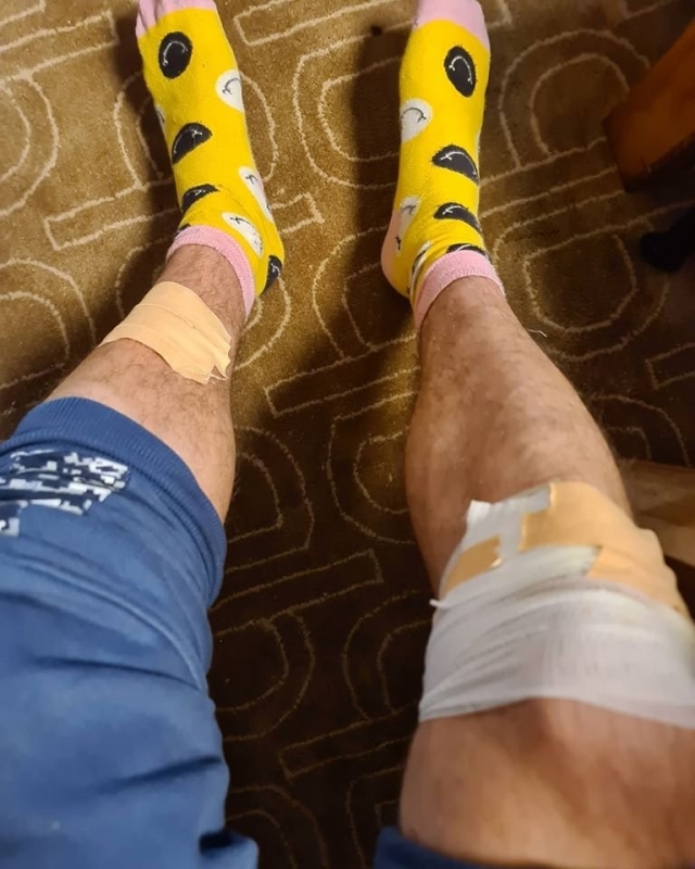 Риалити героят и тв водещ Даниел Петканов претърпя неприятен инцидент. Лудия репортер, както за мнозина е известен, е паднал от мотор. За инцидента сподели самият той в официалния си профил в социалната платформа Инстаграм, където публикува още снимки, на които се виждат охлузванията по тялото му, както и раните на двата му крака.