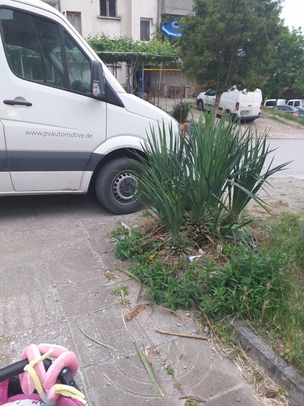 Възмутена майка пропищя: Фирмен бус задръсти тротоар на улица в Мездра, няма как да мина /снимки/