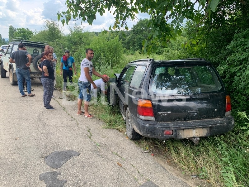 Водачът на японската кола е ром от село Тишевица и няма шофьорска книжка, а на местопроизшествието са пристигнали негови познати.