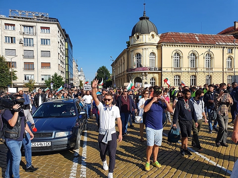 Протестрищите спряха движението пред парламента. Хората, които стават все повече, викат ”Оставка” и ”Мутри вън”. Някои от тях държат червен картон в ръцете си. Недоволството от мафиотското управление ескалира, съдейки по техните скандирания. Полицейски кордони не позволят на протестиращите да стигнат по-близо до сградата на НС. Те обаче успяха да се преборят за място на жълтите павета.