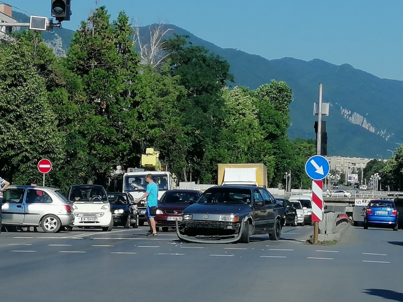 Временно трафикът в района беше затруднен, но вече двете коли са преместени извън платното за движение и то се осъществява нормално.