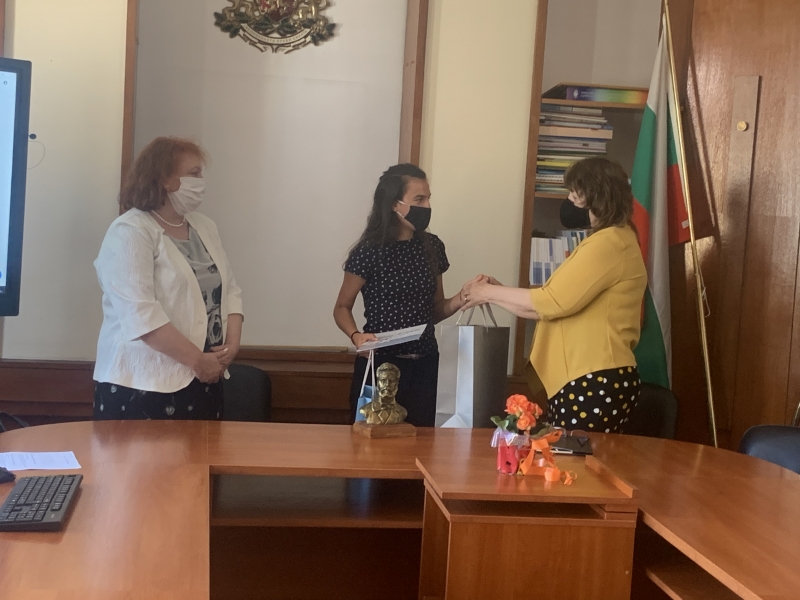 „За мен е чест да връча отличието „Национална диплома“ на Министерство на образованието и науката, като признание за твоите огромни усилия, постоянство и труд. Сигурна съм, че ще успяваш във всичко, защото имаш най-силното оръжие – знанието. Ти си една от 44-те зрелостници, които сте наша гордост и постигнахте успехите си, независимо от предизвикателствата на тази различна учебна година. Съдбата обича смелите, а смелост е да успееш, да си пръв в област Враца, да носиш честта и гордостта на своето училище - Природо-математическа гимназия „Акад. Иван Ценов“. Надявам се да имаш успех във всяко едно свое начинание!“, пожела областният управител и връчи на отличената врачанска възпитаничка бронзова скулптура на Христо Ботев.
