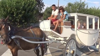 Бяла карета с впрегнат кон, натоварена с децата от приюта на отец Иван, от днес е най-новата атракция в монтанското село Якимово, научи агенция BulNews.