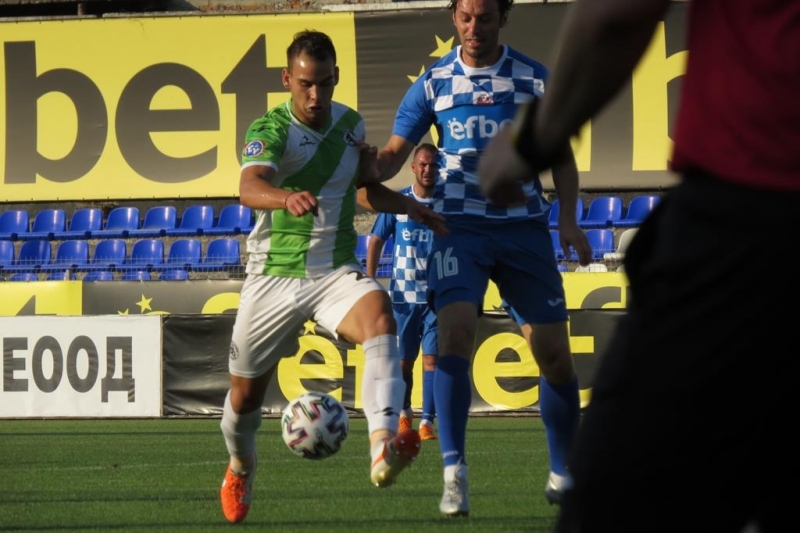 Енцо Челестини откри резултата в 21-та мин., след като бе изведен вляво в наказателното поле от Николай Цветков-Демона и вкара в далечния ъгъл. В 34-та мин. франсето стреля с глава, но над напречната греда. Грешка на вратаря Ивайло Върганов пък бе наказана хладнокръвно от Янко Ангелов в 36-та мин. Тогава стражът на гостите излезе неразчетено напред, не изчисти добре топката, тя попадна у от централната част у Ангелов и той с левия крак я изпрати в опразнената врата за 2:0. Секунди преди почивката Ивелин Илиев-Шакири проби от дясно и намери в пеналта Сергей Георгиев, но той би над вратата.