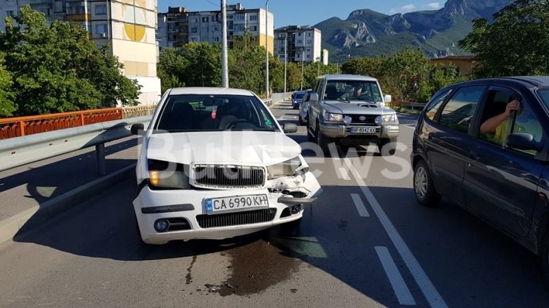 Инцидентът е станал преди минути на надлеза на КАТ. Врачански "Форд" се е движил към ж.к. "Дъбника", а след него на скъсена дистанция е пътувала служебната "Шкода" със софийска регистрация.