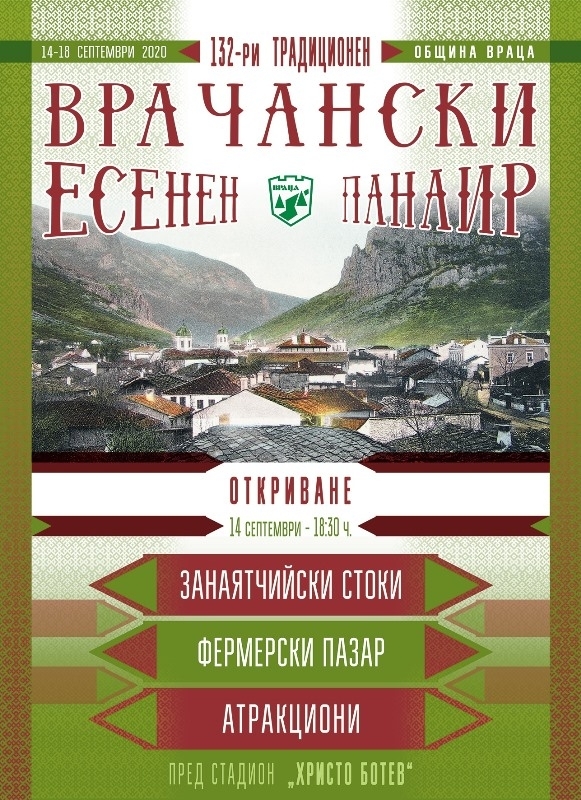 Откриването на Врачанския есенен панаир ще се проведе на 14 септември, от 18.30 часа, пред стадион „Христо Ботев“.