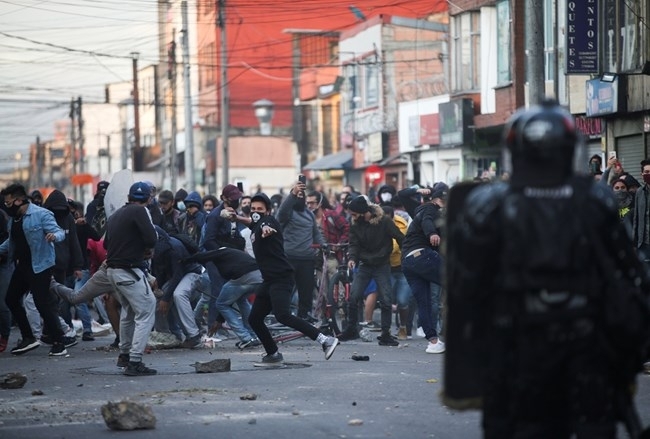 Съобщено беше също така, че са ранени 30 полицаи и са нанесени щети на 53 полицейски участъка и 77 коли след избухването на размириците вчера, при които протестиращи влязоха в сблъсъци с органите на реда, главно в столицата. Нападнати са били и полицейски участъци в Меделин и Кали.