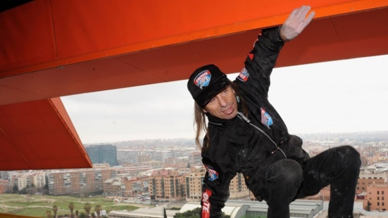 Французинът Ален Робер, известен като човекът паяк, се изкачил по една от най-високите сгради във Франкфурт.