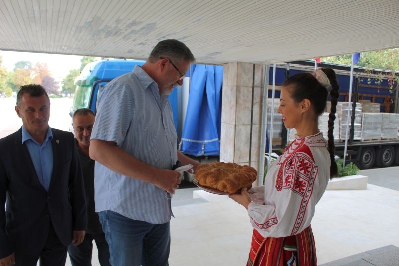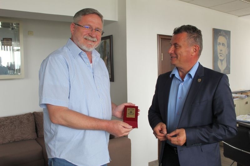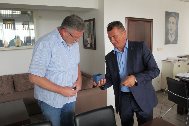 Инж. Цветков подари на Негово Превъзходителство, Мачей Шимански кристална топка и почетен плакет с логото на Общината.