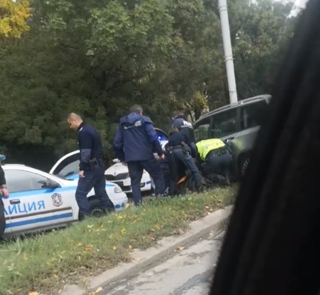 Служителите на реда са приети с контузии във ВМА, а шофьорът – в противошокова зала в „Пирогов“.