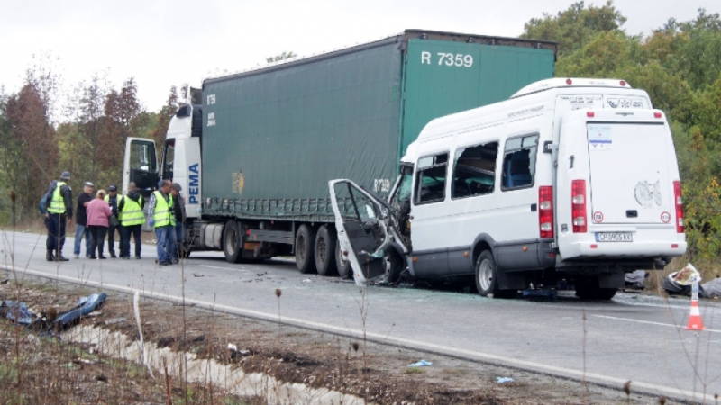 След тежката катастрофа с три жертви на пътя към граничния пункт "Лесово", вчера прокуратурата в Ямбол повдигна обвинение за причиняване на смърт по непредпазливост на молдовския шофьор на ТИР с украинска регистрация. Той е задържан за 72 часа. На този фон борбата за живот на най-тежко пострадалите в София и Ямбол продължава.