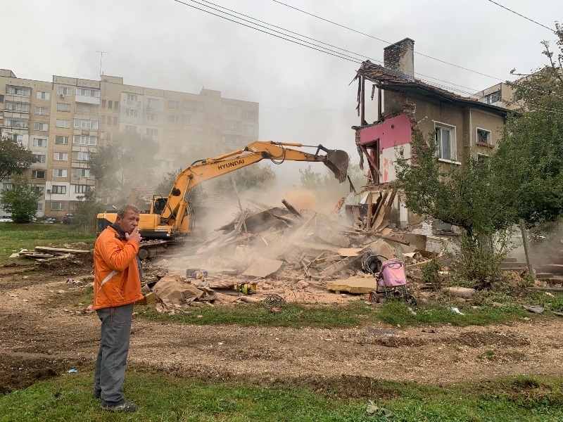 Премахването на сградата се извършва в присъствието на служители на полицията, звено „Инспекторат“, ОП „БКС“, представители на ВиК.
