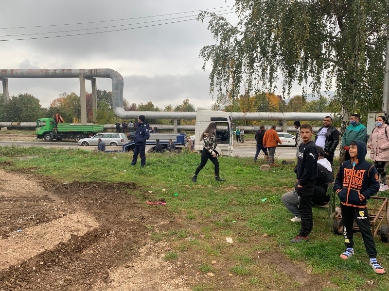 Полицейски екип следеше за спазването на обществения ред при събарянето.