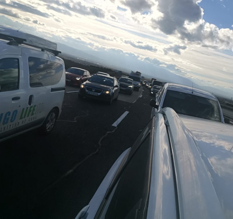 Временно е затруднено движението в района на км 17-18 на автомагистрала „Хемус“ в посока Ботевград.
