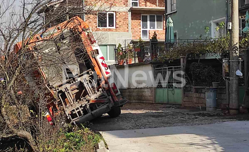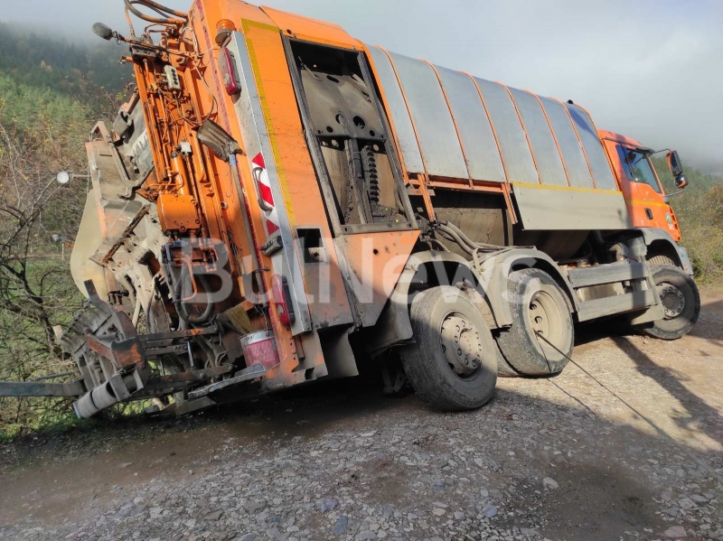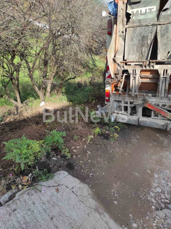 Боклукчийски камион се обърна в дере край рушаща се улица в Згориград, кметът псува хората /снимки + видео/