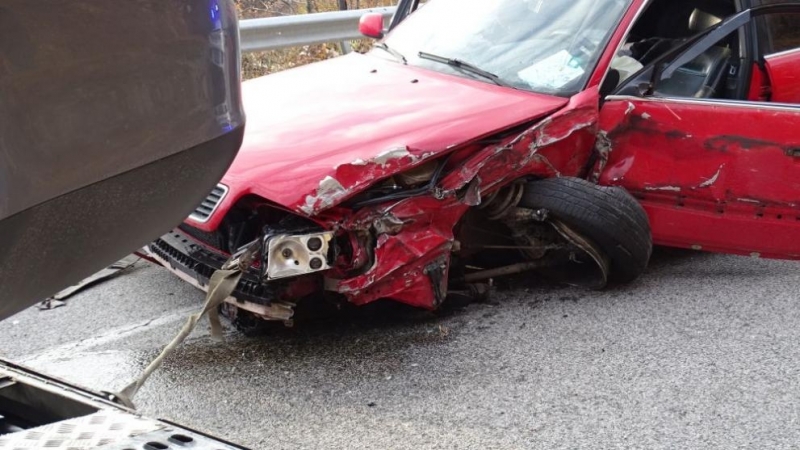 „Изпусна завоя, караше бързо“, каза водачът на цистерната с регистрация от Велес - Северна Македония. Няма пострадали хора при произшествието, но за 50 минути движението в района бе затворено до изтеглянето на лекия автомобил и освобождаването на едната лента.