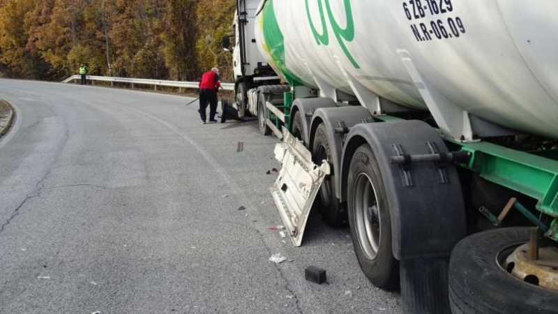 Лек автомобил изпусна завой и се удари странично в цистерна с македонска регистрация, превозваща газ.