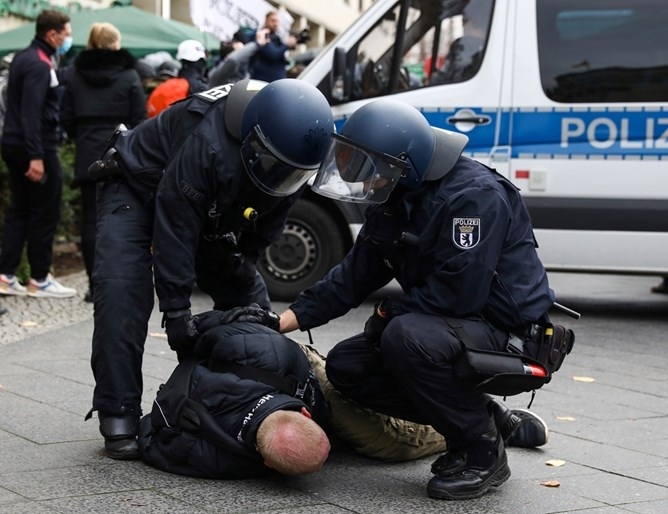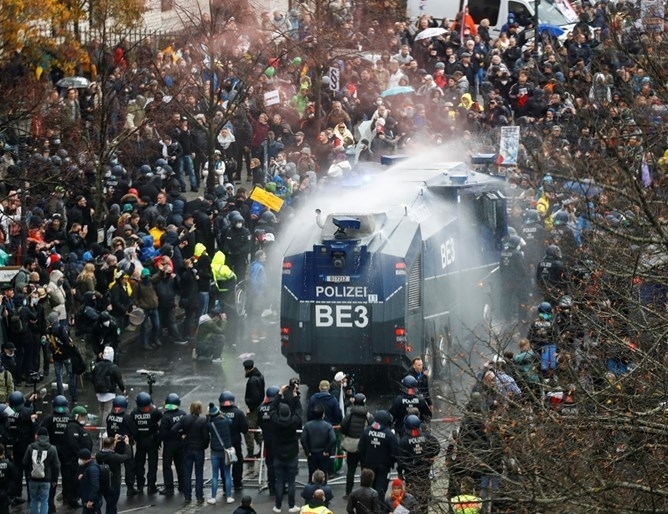 Полицията използва водни оръдия срещу демонстранти, протестиращи в центъра на Берлин срещу коронавирусните ограничения, предаде Асошиейтед прес.