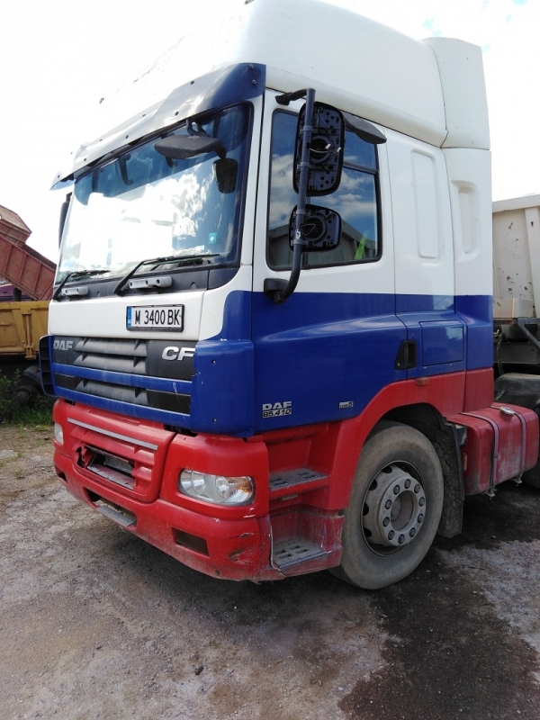 Товарното возило е „ДАФ“ 85 ЦФ 430. Цветoвете на камиона са бял, син и червен, а годината на производство 2007. Мощност 315kw, като горивото, което ползва е дизел. Автомобилът е категория N3 и е екологична категория - EURO 5. Окачването му е комбинирано, в него има и спална кабина. Воланът му е десен, а предното стъкло е спукано.