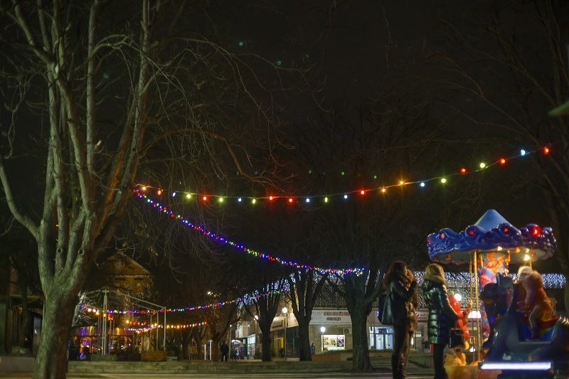 Празнично украсени са и пешеходните зони в централната градска част - между Основно училище „Христо Ботев“ и жп гарата и в Алеята на кестените.