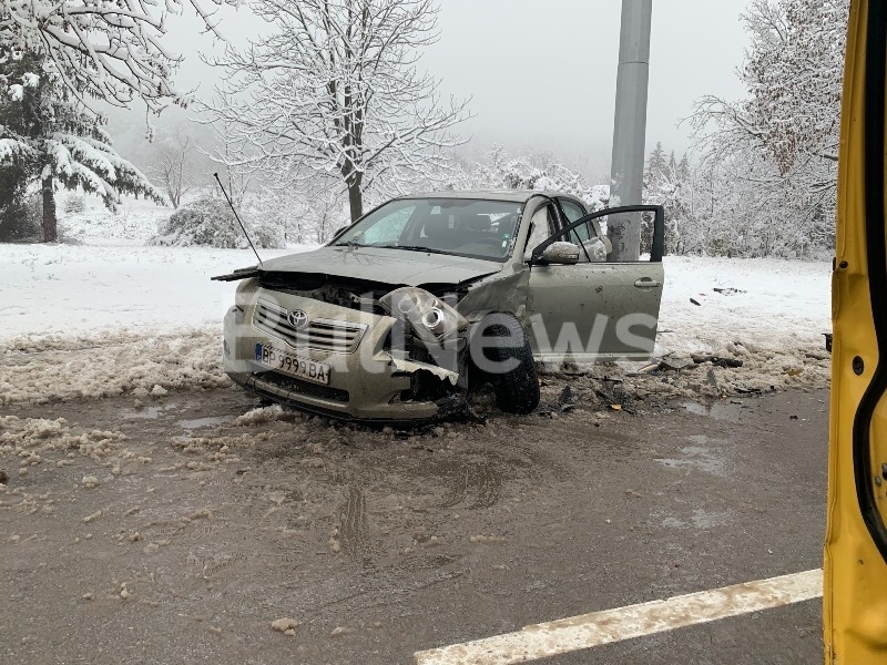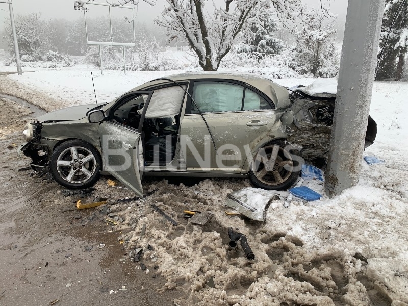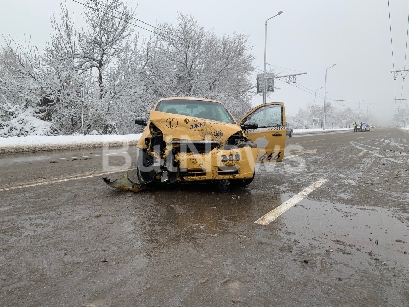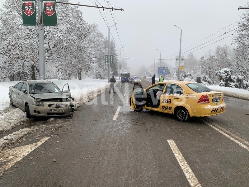 Снегът ни почна! Тежка катастрофа с такси на възлов булевард във Враца, има пострадал /снимки/