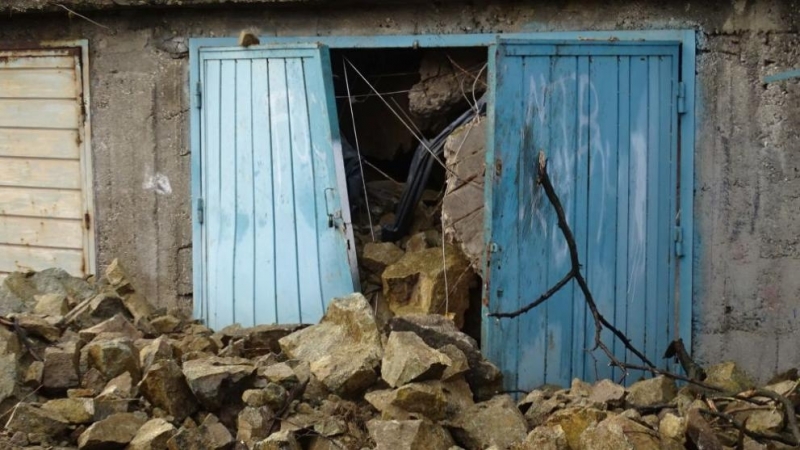 След откъсването си скалата пада върху гаражите, разбива се на късове камъни, плочите на три от тях са пробити. В тях не е имало автомобили, последният засегнат гараж е мебелиран. Другите два са пълни с камъни и счупените плочи.