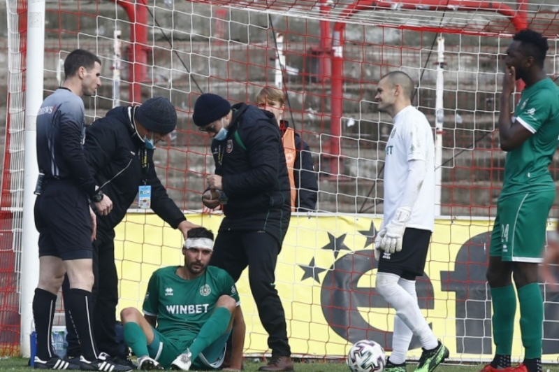 В 35-ата минута домакините създадоха поредни няколко опасни положения. Първо Вион стреля под ъгъл, Костов спаси, а бранител в зелено изчисти в корнер. След неговото изпълнение Антов спечели единоборство с Миланов, а ударът му с глава се спря в дясната греда. Защитникът на врачани пък падна на земята с кръв по лицето и се наложи намесата на лекарския екип.