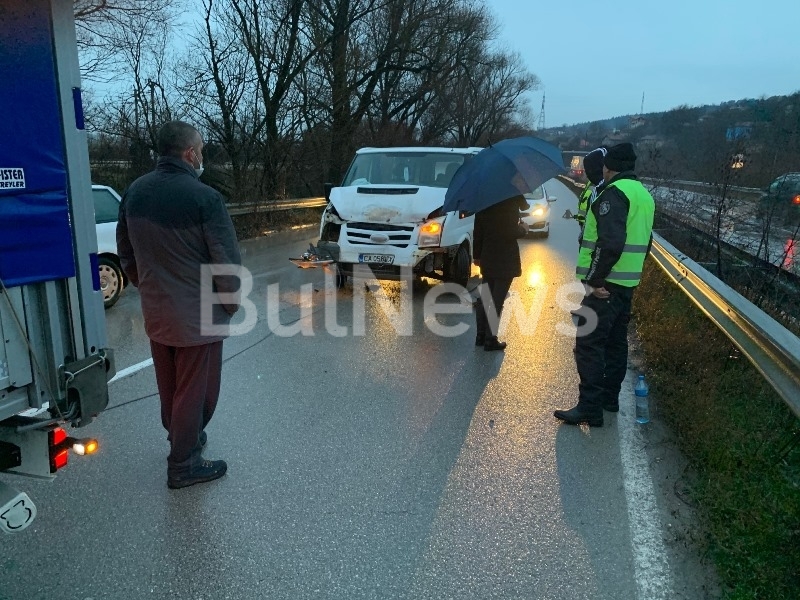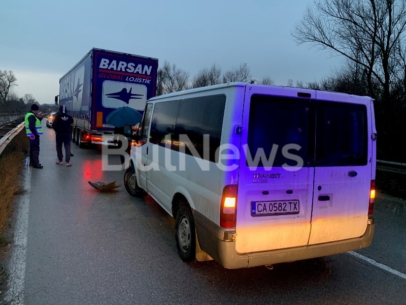 Тежкотоварната машина е пътувала в посока Дунав мост 2, а "Форд"-ът със софийска регистрация се е движил от железничарския град към Враца. До произшествието се е стигнало след като ТИР-ът рязко преминал от дясната в лявата лента, без да види, че зад него микробусът, управляван от около 35-годишен водач, е предприел изпреварване.