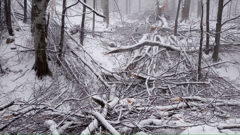 Единственият непроходим път в региона е трасето за пещерата Леденика. Няколко автомобила са блокирани и чакат отстраняването на паднало дърво.