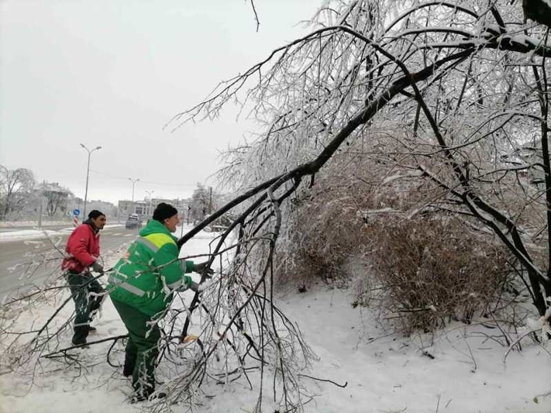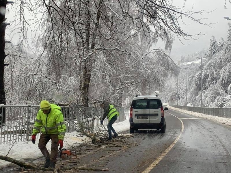 Екипи на ОП „БКС“ са ангажирани с премахването на счупени клони и паднали дървета в града.