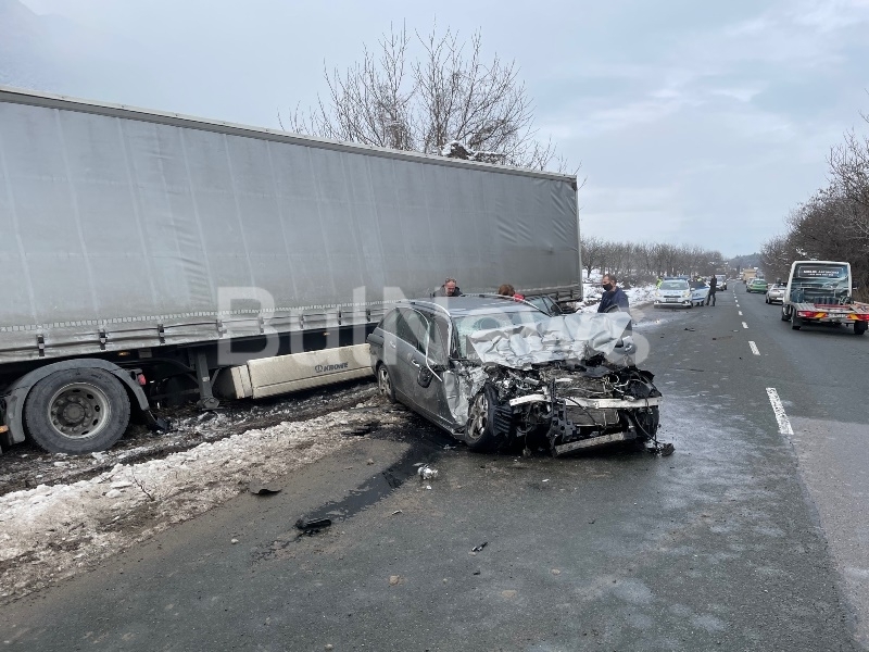 Ударът е бил толкова силен, че тежкотоварната машина е изхвърчала в крайпътното дере. Предницата на немското возило е напълно размазана, а по ТИР-а също има материални щети. И двата еърбега на "Мерцедес"-а са излезли при зверския удар. Инцидентът е станал пред очите на полицейски патрул, който е бил на мястото и е оказвал съдействие на екип на АПИ при ремонт на голяма дупка на пътя.