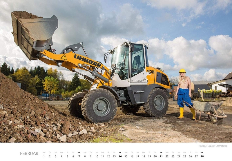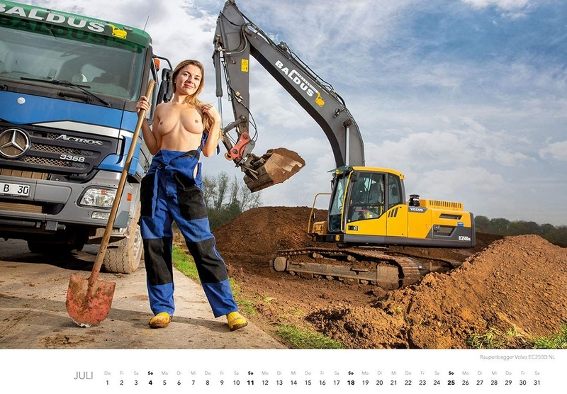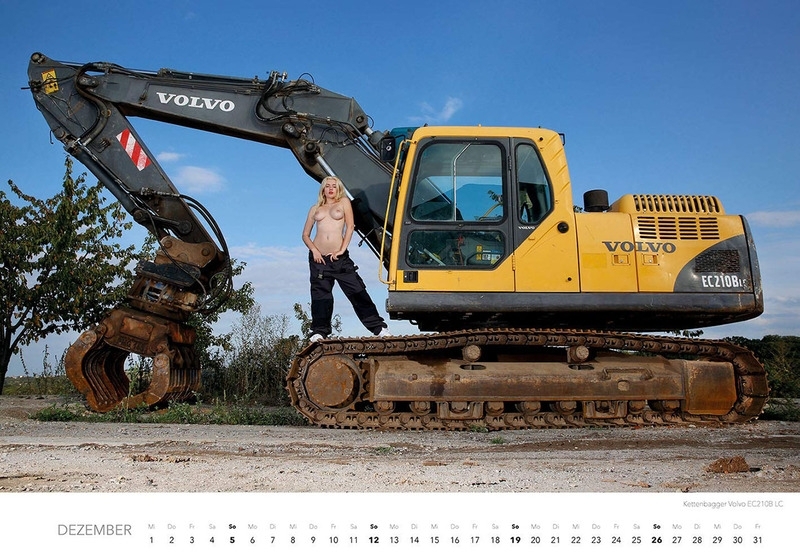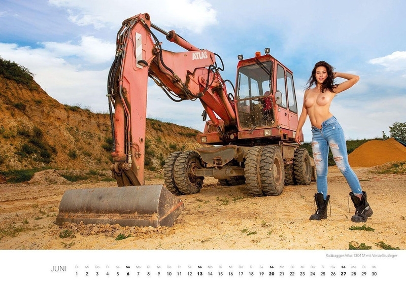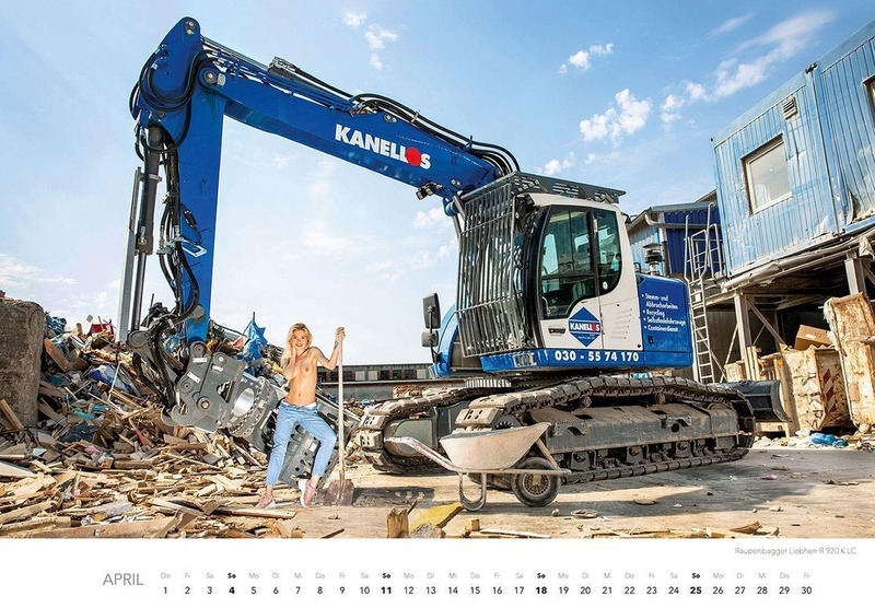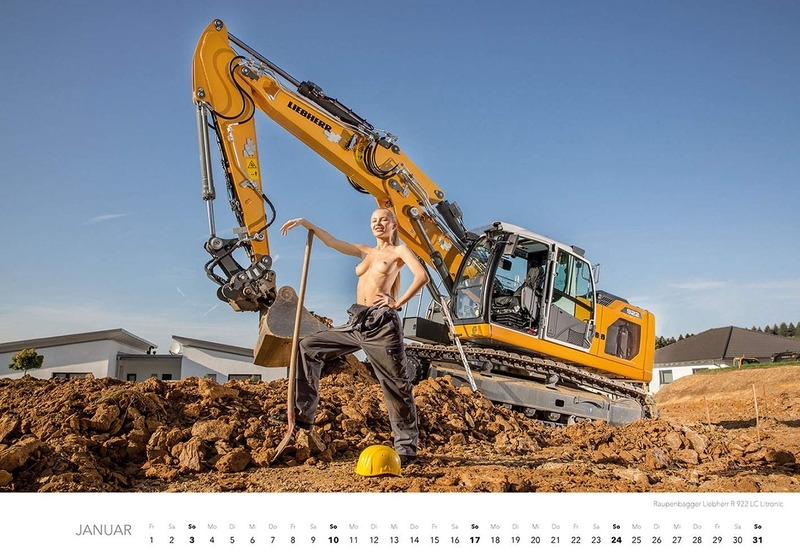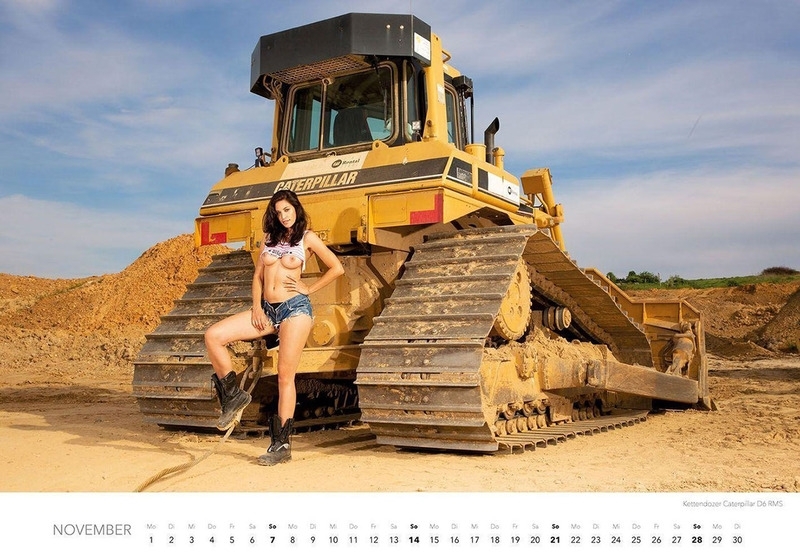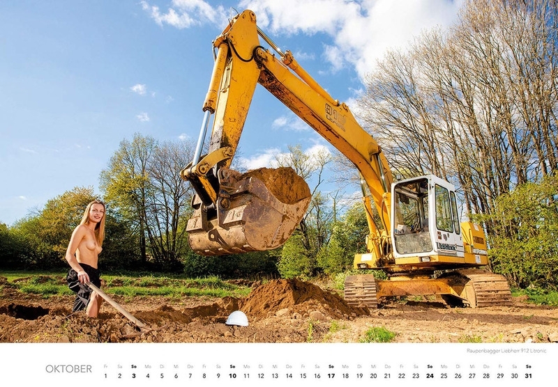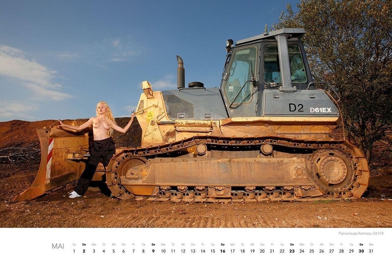 В новия календар са показани дванадесет моделки, позиращи със строителни машини, а сред оборудването има и доста стари модели.