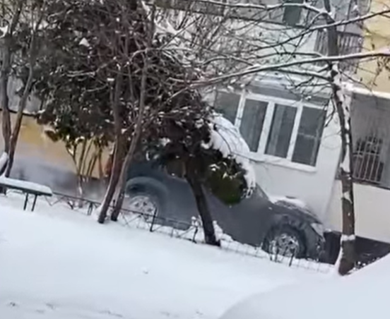 Колата е преминала през детска площадка и се е врязала в жилищната сграда.