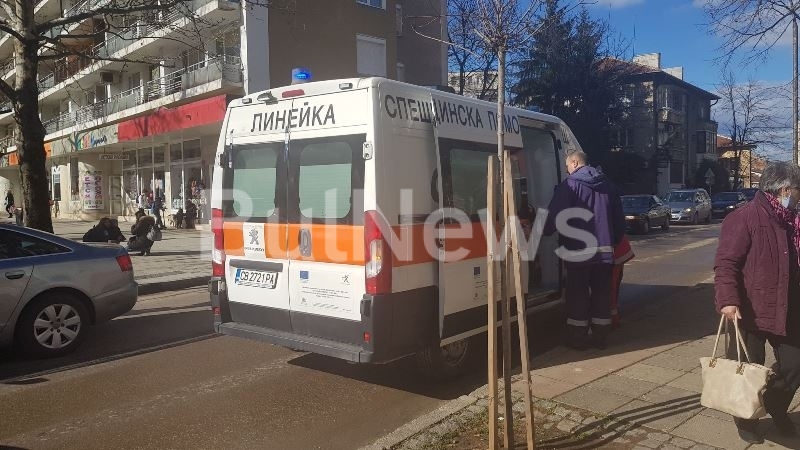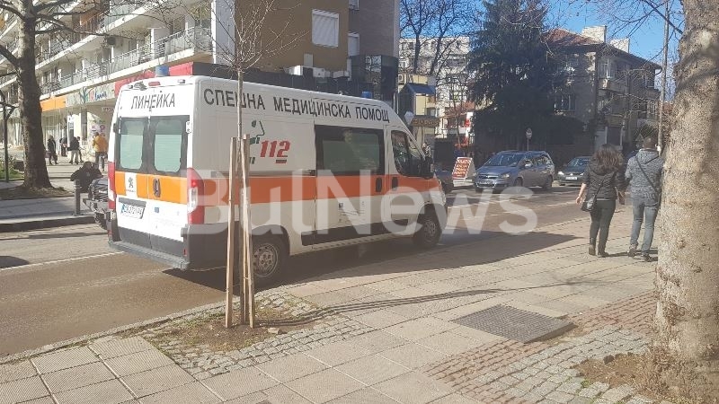 Линейка долетя в центъра на Враца заради пострадал човек, видя първо репортер на агенция BulNews.
