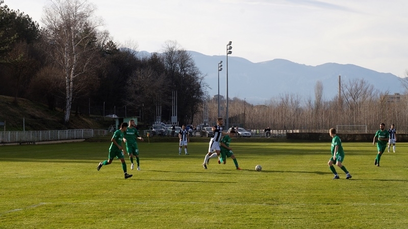 Три минути след това обаче Антонио Йорданов се пребори за една спорна топка пред пеналта и с плътен изстрел под напречната греда върна домакините в мача - 1:2.