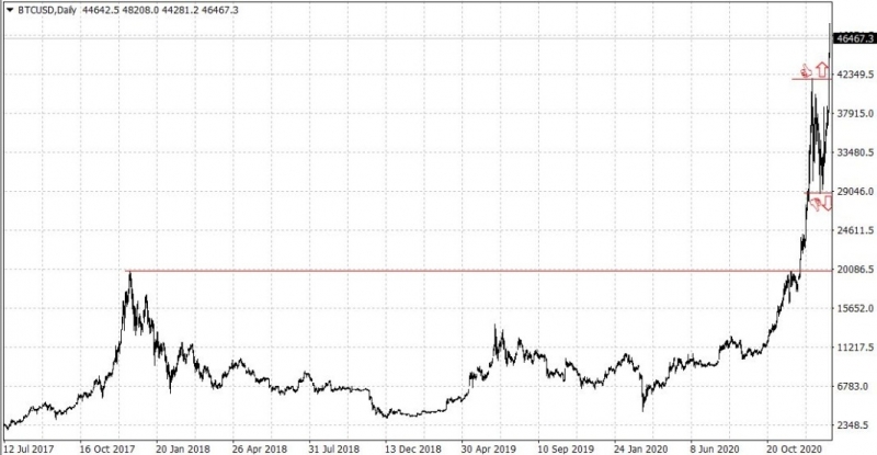 За първи път в историята: Биткойнът премина 48 хил. долара