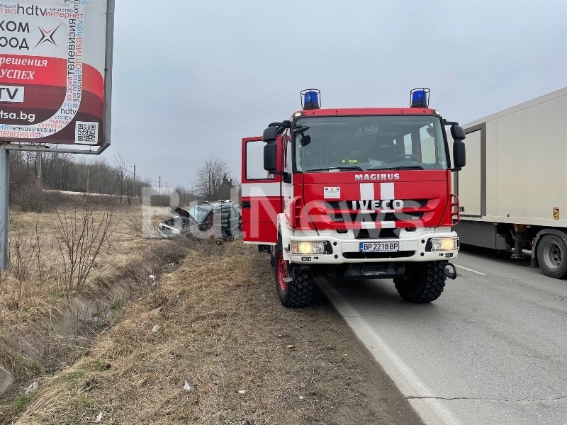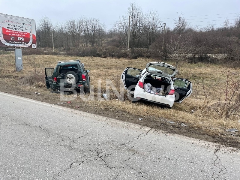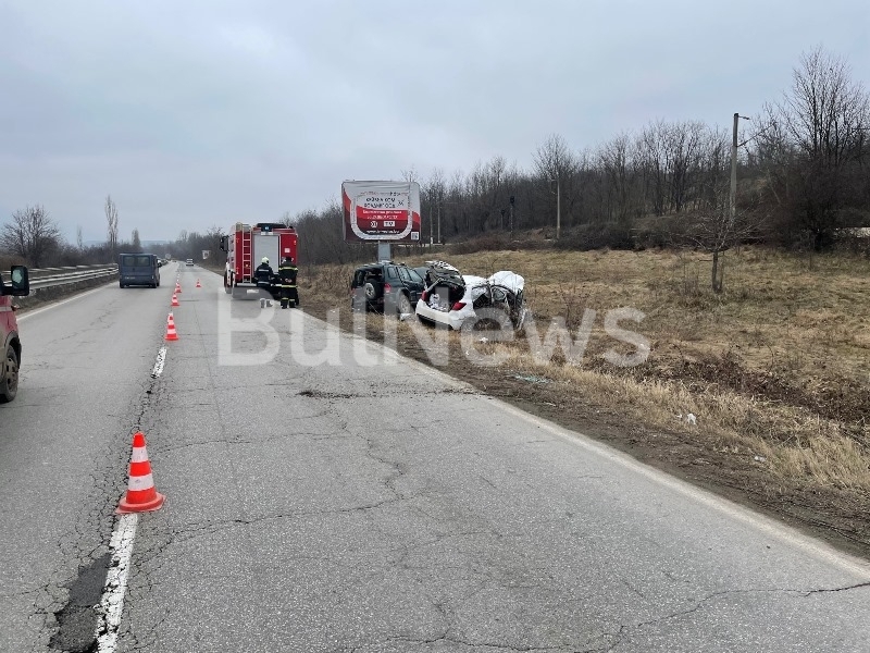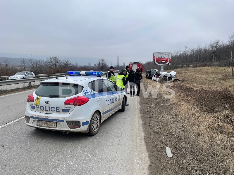 Служебна кола на А1 се размаза в джип на главен път Е-79 между Мездра и Враца, видя първо репортер на агенция BulNews.