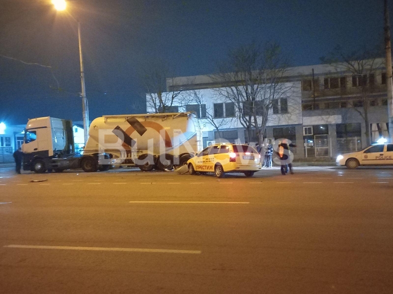 Такси на „Престиж“ се е ударило в камион на бул. „Мито Орозов“ във Враца, видя първо репортер на агенция BulNews.