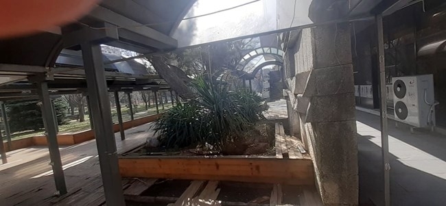 При падането си дървото се е подпряло на металната конструкция на заведението.