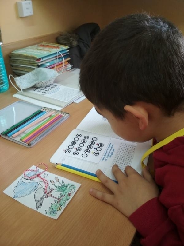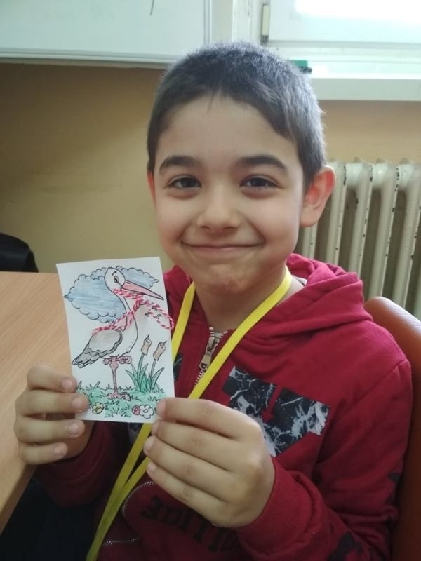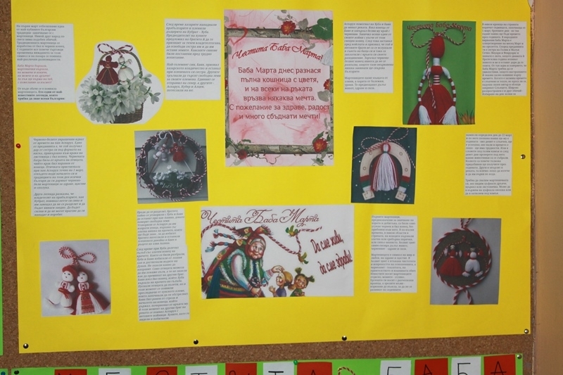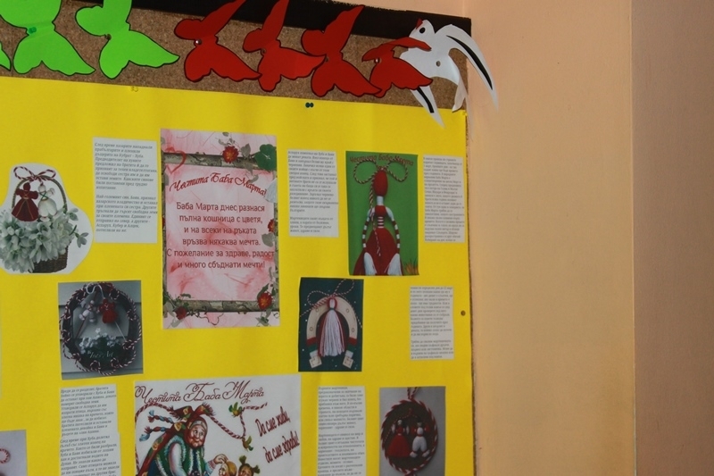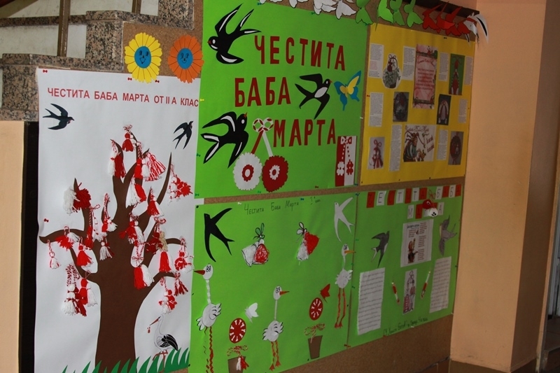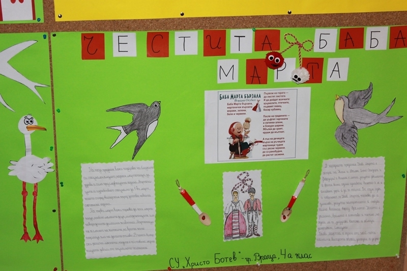 С голям ентусиазъм учениците от начален етап изготвиха мартенски табла, които поставиха на 1-я етаж на училището. Децата от 2.а и 4.а клас изработиха мартеници и закичиха с тях строителите на спортната зала, като изказаха своята благодарност за усилията, които работниците полагат, за да осигурят условия за спорт на ботевчетата.