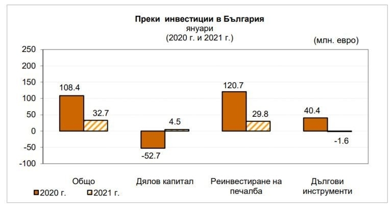 Toвa e cпaд oт пoчти 70% нa гoдишнa ocнoвa, cлeд ĸaтo пpeз янyapи 2020 г. тe бяxa в paзмep нa 108.4 млн. eвpo, уточняват от money.bg.