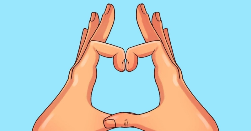 Сгънете фалангите на показалеца и ги притиснете заедно с нокътните плочи. В идеалния случай трябва да се получи малка диамантена форма между тях.
